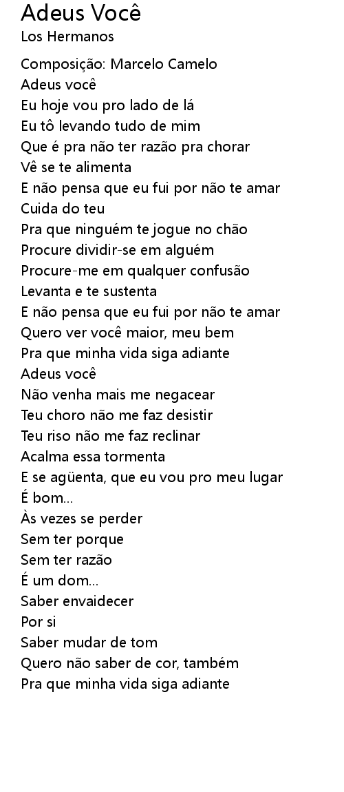 | Song | Adeus Você |