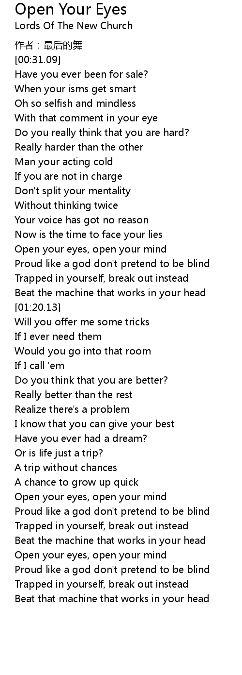 | [01:58.27] | Proud like a god don't pretend to be blind |