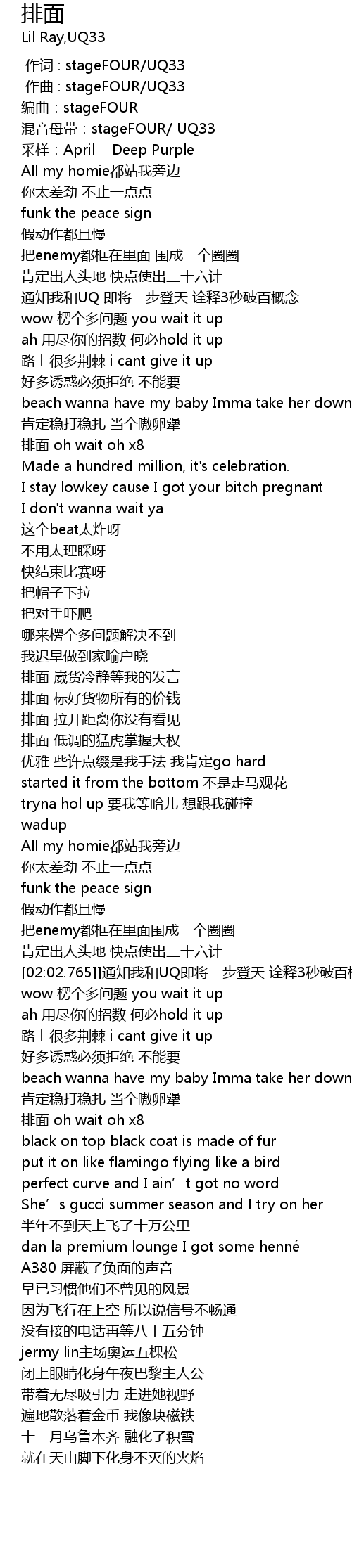 | [02:23.768] | pái miàn oh wait oh x8 |