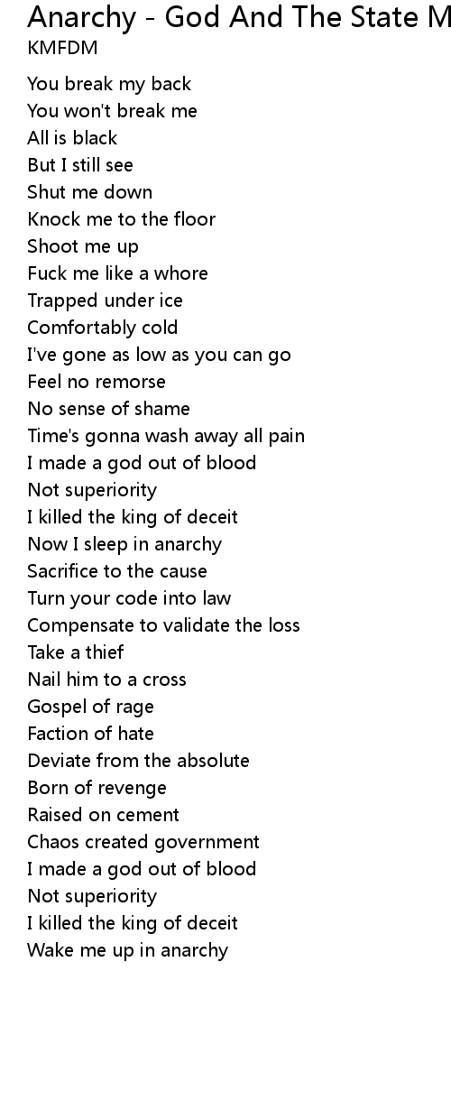 Now I sleep in anarchy |