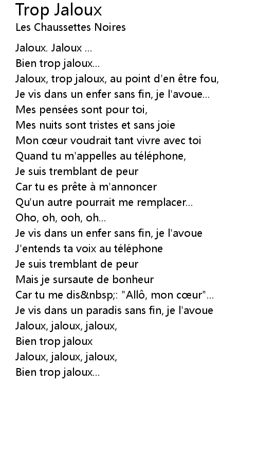 | Jaloux, trop jaloux, au point d' en tre fou, | |