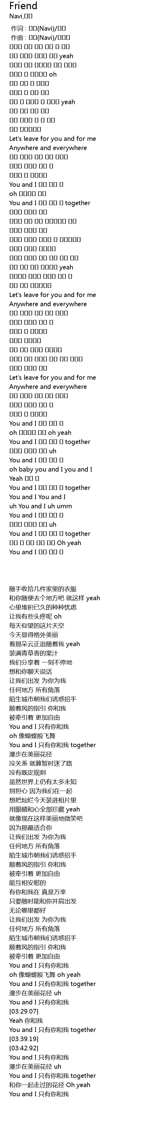 | [03:34.42] | You and I 오직 너와 나 together |