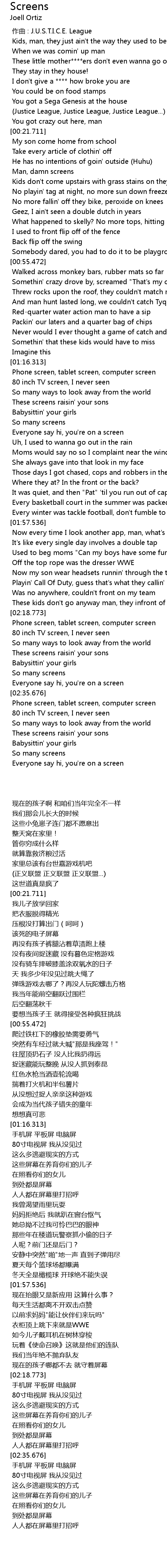 | [02:19.010] | Phone screen, tablet screen, computer screen |