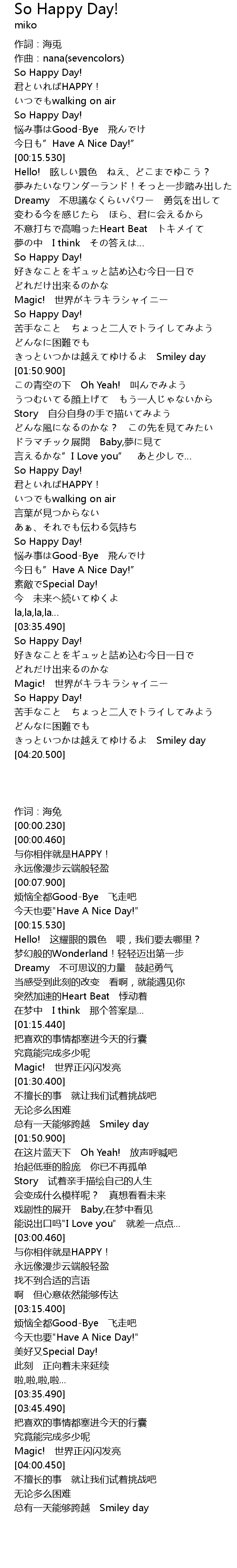 | [03:21.310] | jīn rì" Have A Nice Day!" |