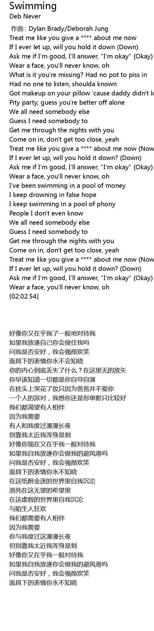 | [00:51.99] | Treat me like you give a **** about me now (Now) |
