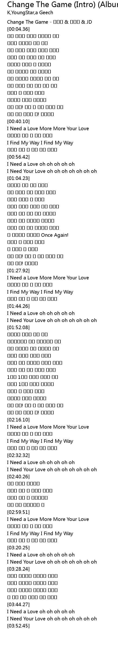 | [00:01.52] | Change The Game - 정형돈 & 데프콘 & JD |
