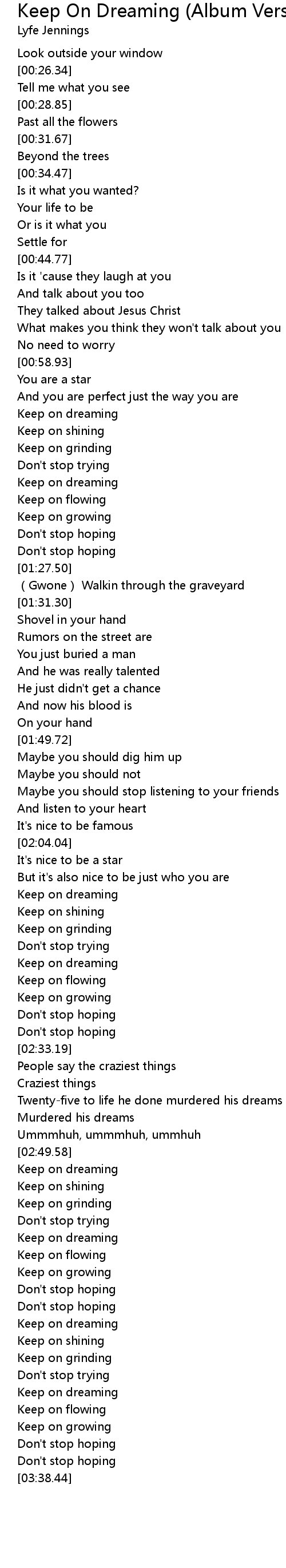 | [02:38.45] | Twentyfive to life he done murdered his dreams |
