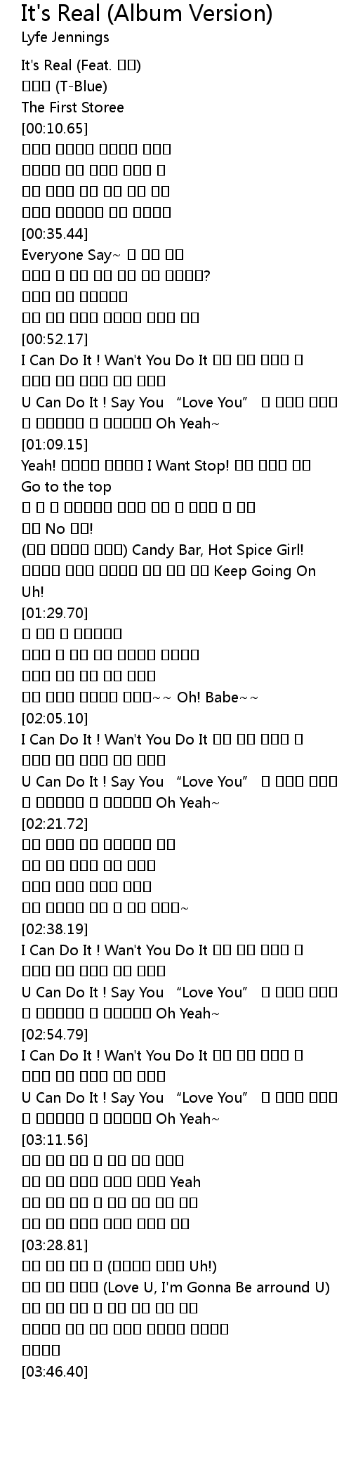| [02:46.70] | U Can Do It ! Say You “Love You” 이 세상이 멈춰도 |