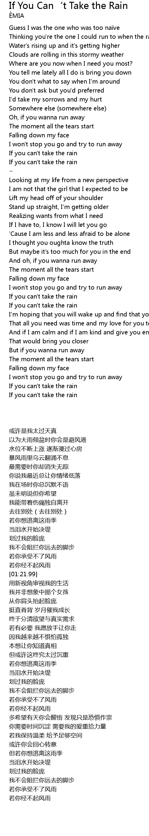 | [00:18.23] | Thinking you' re the one I could run to when the rain starts falling |