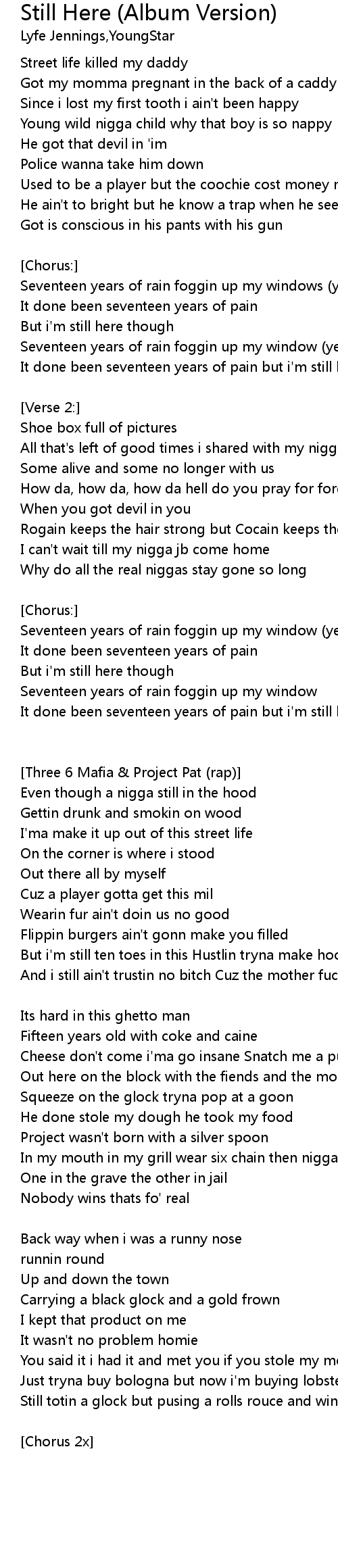 And i still ain't trustin no bitch Cuz the mother fuckers always snitch |