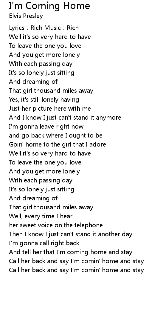 | Call her back and say I' m comin' home and stay | |