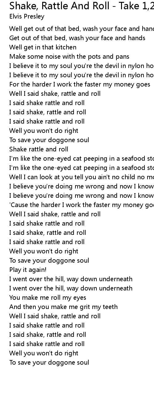 Shake, Rattle And Roll - Take 1,2 Lyrics