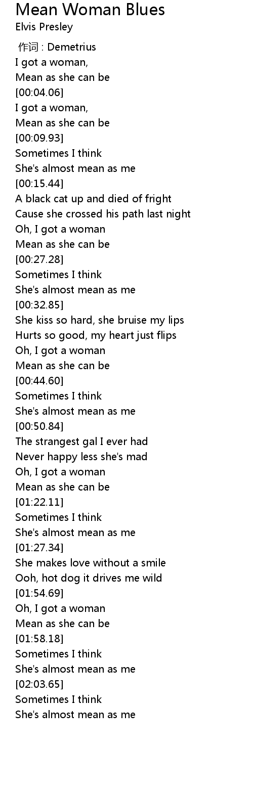 | [02:01.34] | She' s almost mean as me |