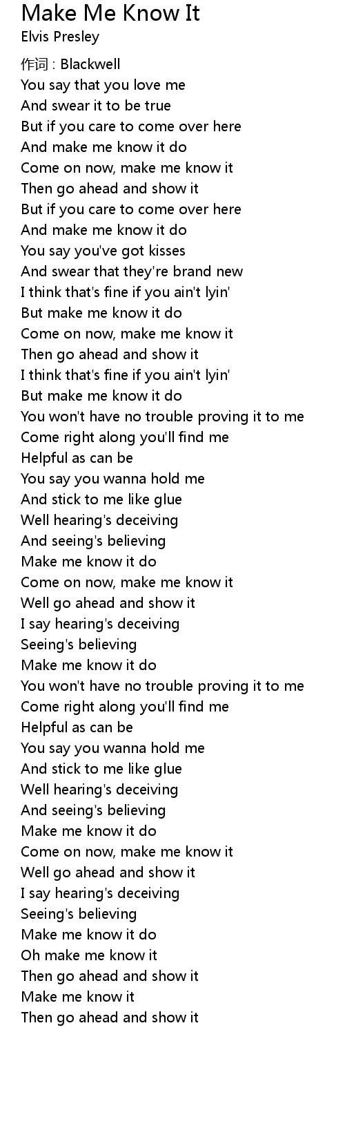 | Come on now, make me know it | |