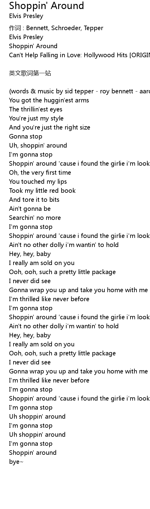 | Shoppin' around ' cause i found the girlie i' m lookin' for | |