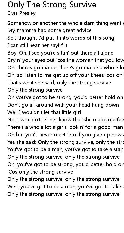 | [02:09.310] | Only the strong survive, only the strong survive |