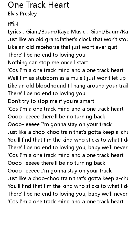 | ' Cos I' m a one track mind and a one track heart | |