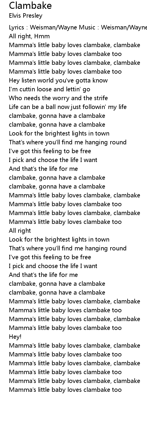 | Mamma' s little baby loves clambake, clambake | |