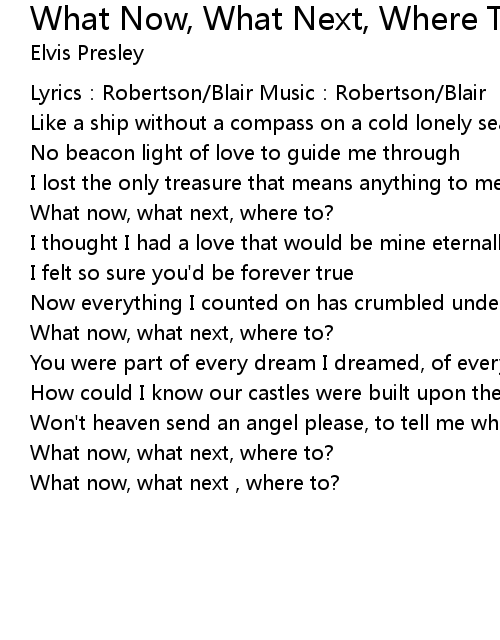 | Song | What Now, What Next, Where To |