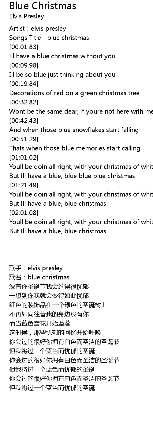 | [00:04.01] | Ill have a blue christmas without you |