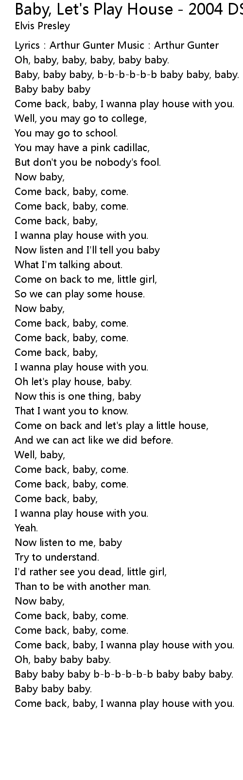| Come back, baby, I wanna play house with you. | |
