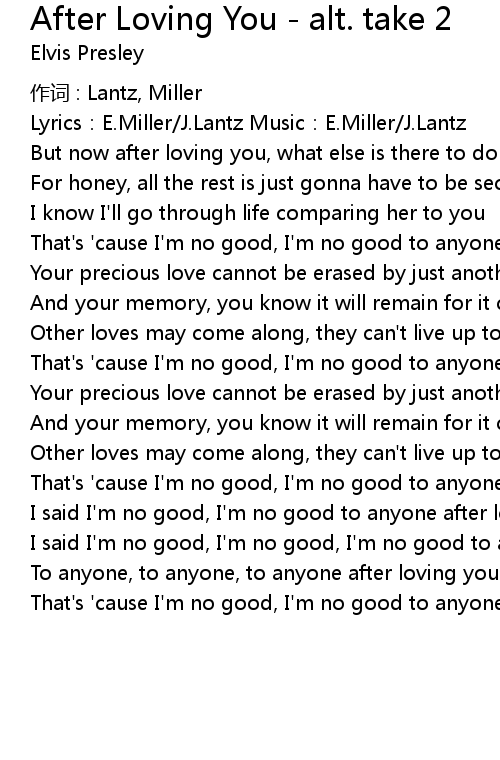 | That' s ' cause I' m no good, I' m no good to anyone after loving you | |
