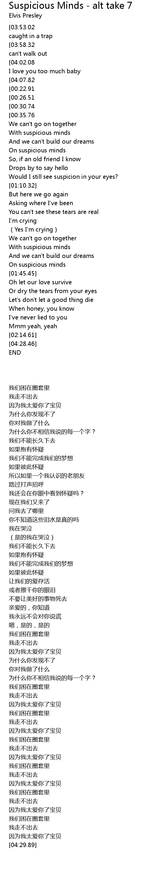 | [00:51.86] | On suspicious minds |