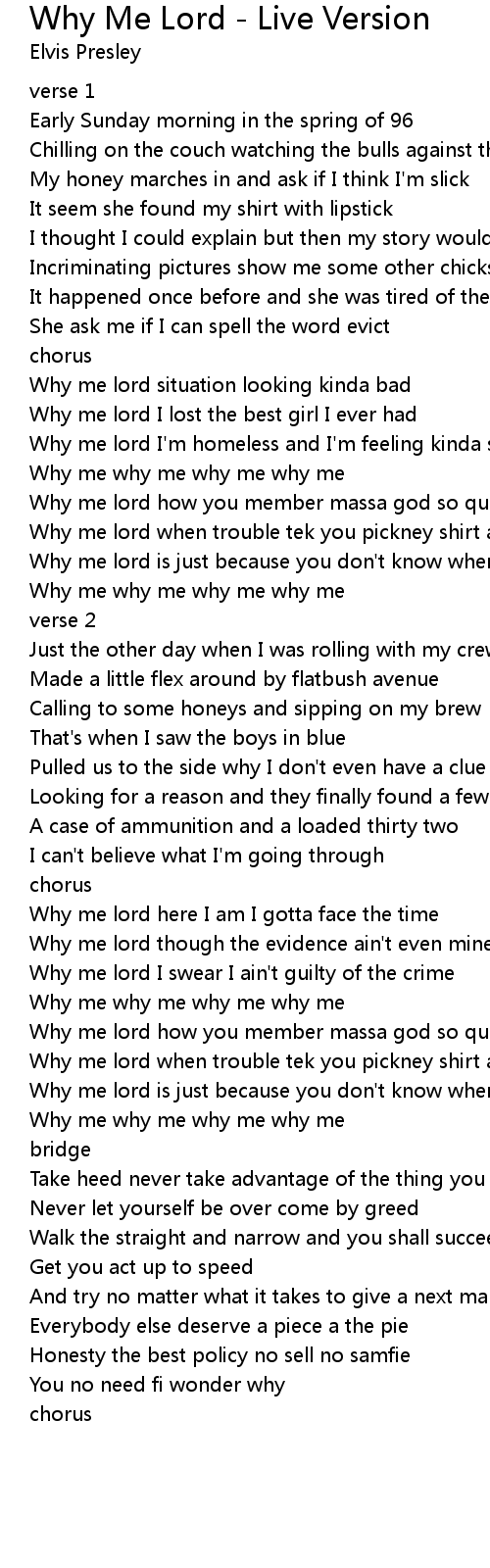 Why me lord I'm homeless and I'm feeling kinda sad |