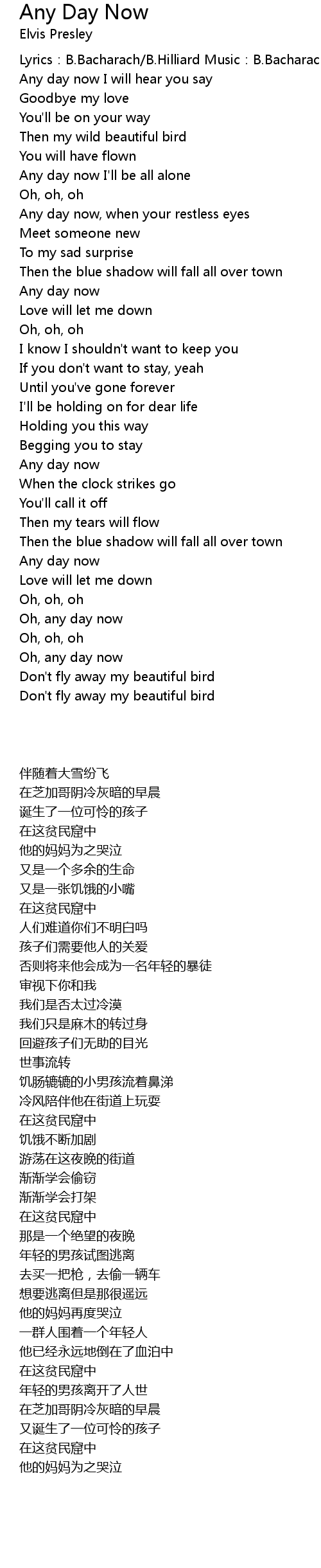 | Song | Any Day Now |