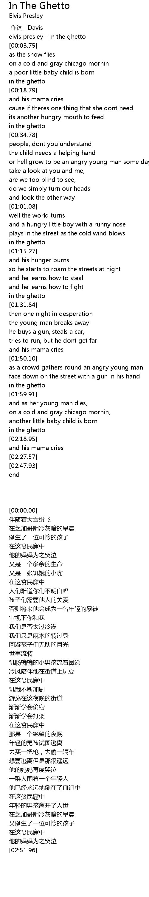 | [00:00.00] | elvis presley in the ghetto |