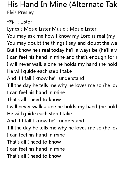 | I can feel his hand in mine | |