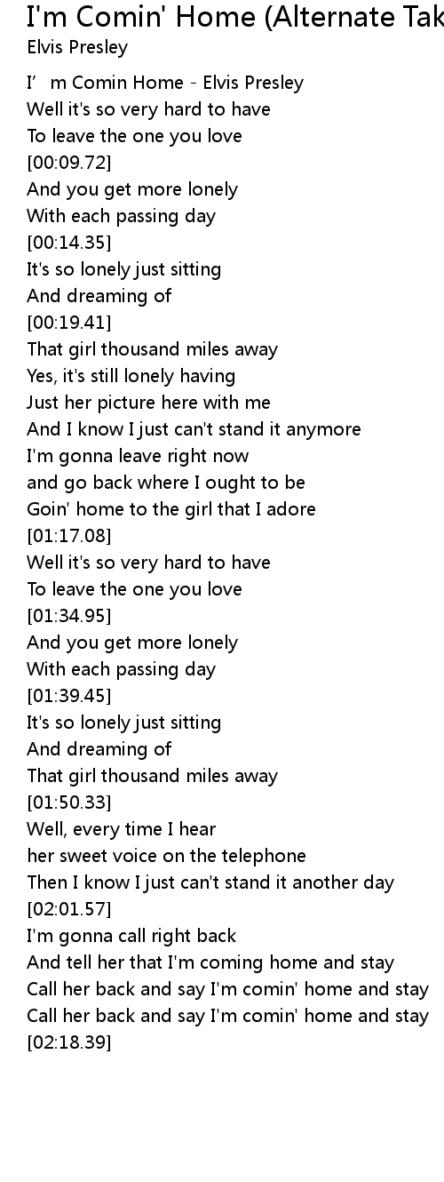 | [00:00.53] | I' m Comin Home Elvis Presley |