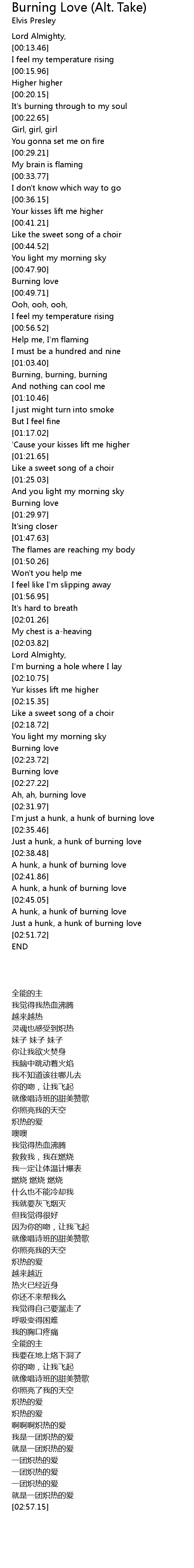 A hunk, a hunk of burning love |