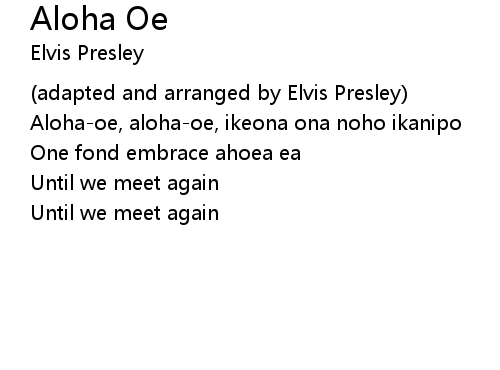Aloha-oe, aloha-oe, ikeona ona noho ikanipo