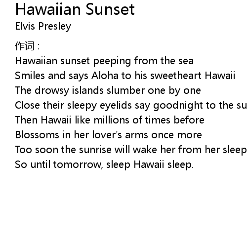 | Song | Hawaiian Sunset |