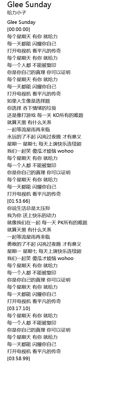 | [03:44.51] | 每个星期天 有你 就给力 |