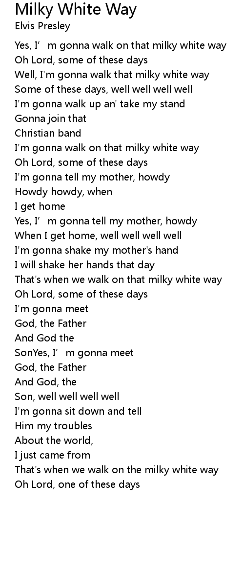 | Yes, I' m gonna walk on that milky white way | |
