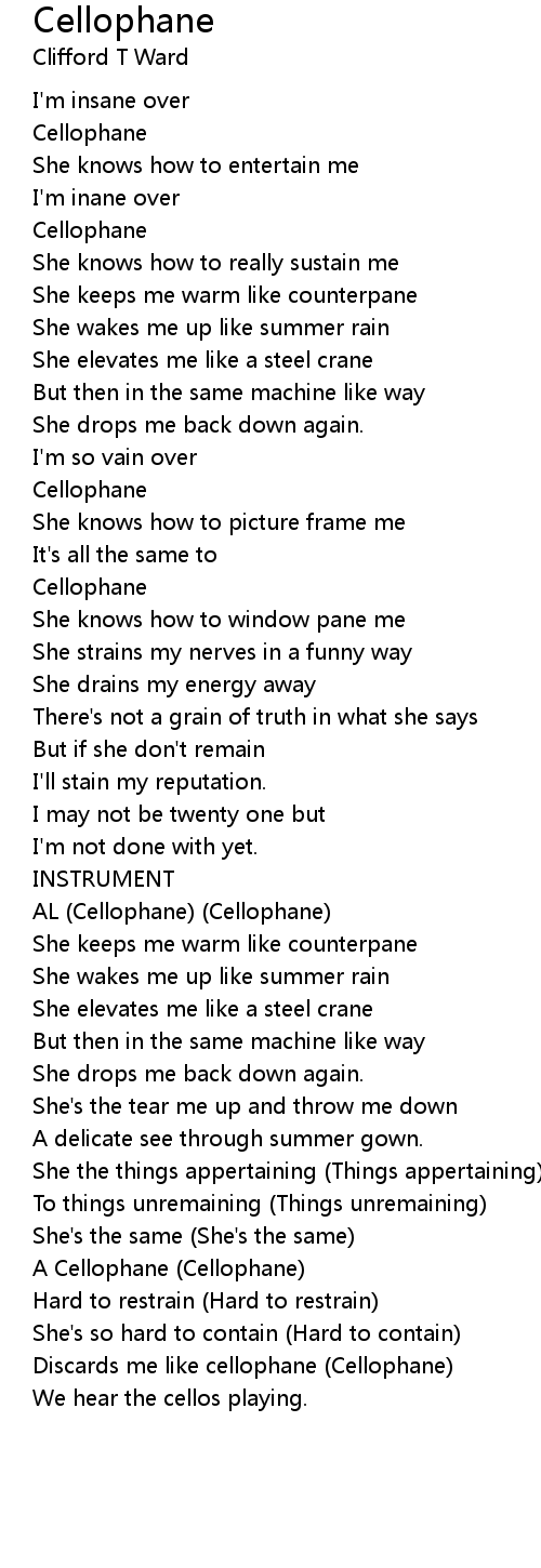 Discards me like cellophane (Cellophane) |