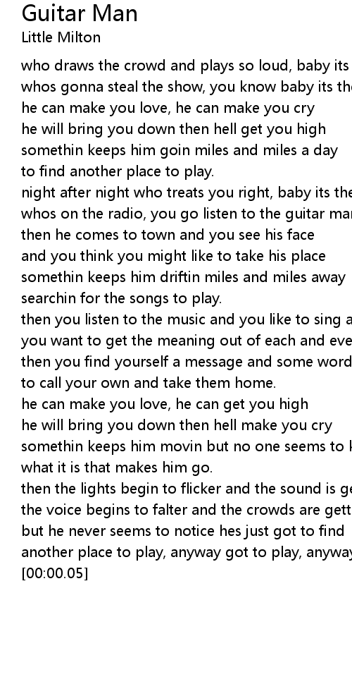 night after night who treats you right, baby its the guitar man |