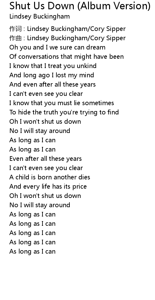 | 作词 : Lindsey Buckingham/Cory Sipper | |