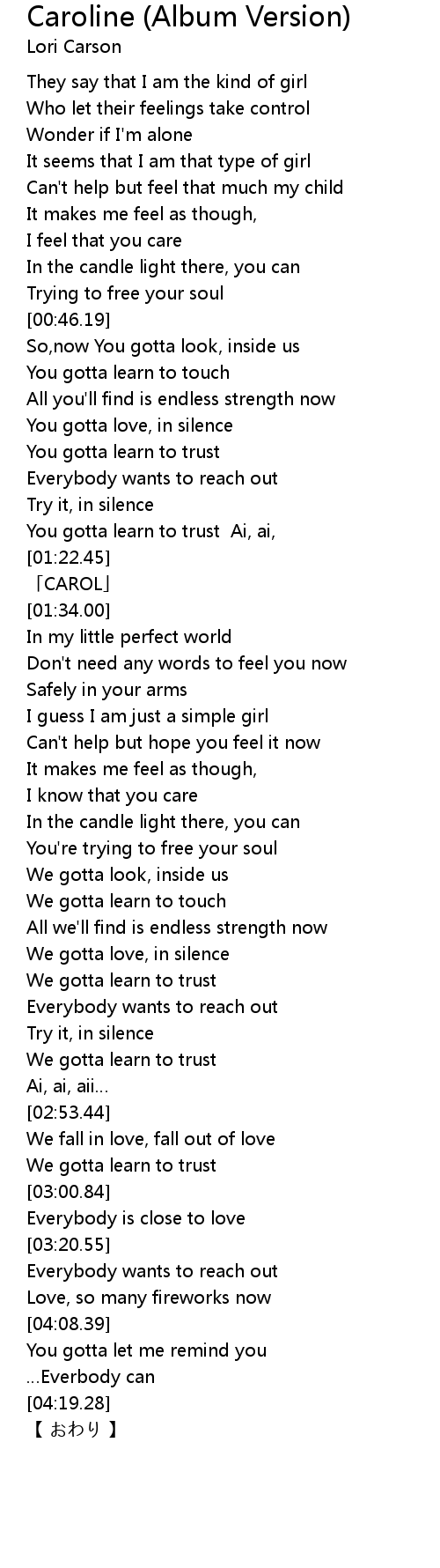 | [01:24.00] | 「CAROL」 |