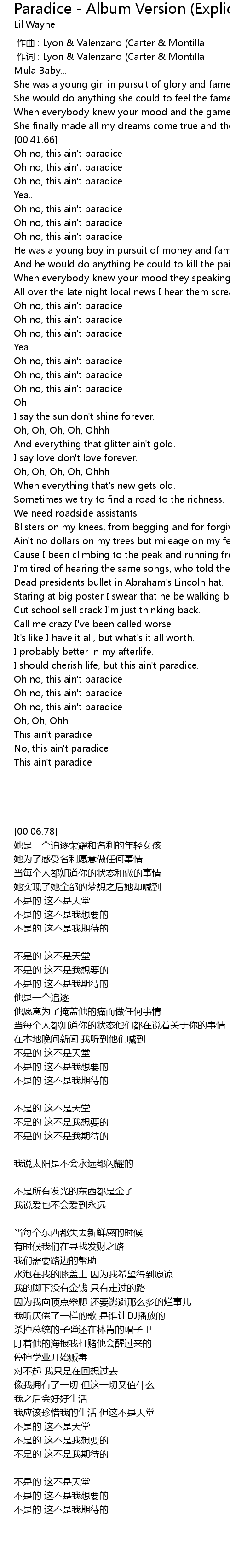 | [00:51.78] | Oh no, this ain' t paradice |