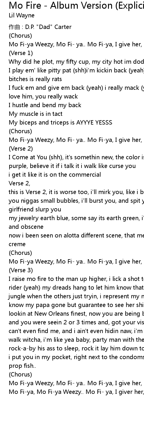 | Mo Fiya Weezy, Mo Fi ya.. Mo Fiya, I give her, Mo Fiya | |