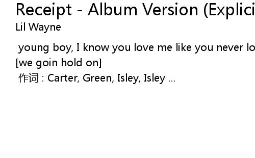 | Song | Receipt - Album Version (Explicit) |