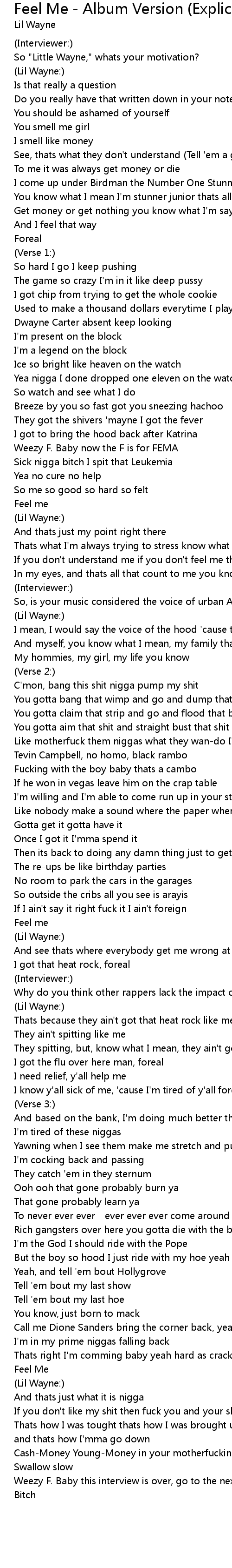 Weezy F. Baby this interview is over, go to the next song |