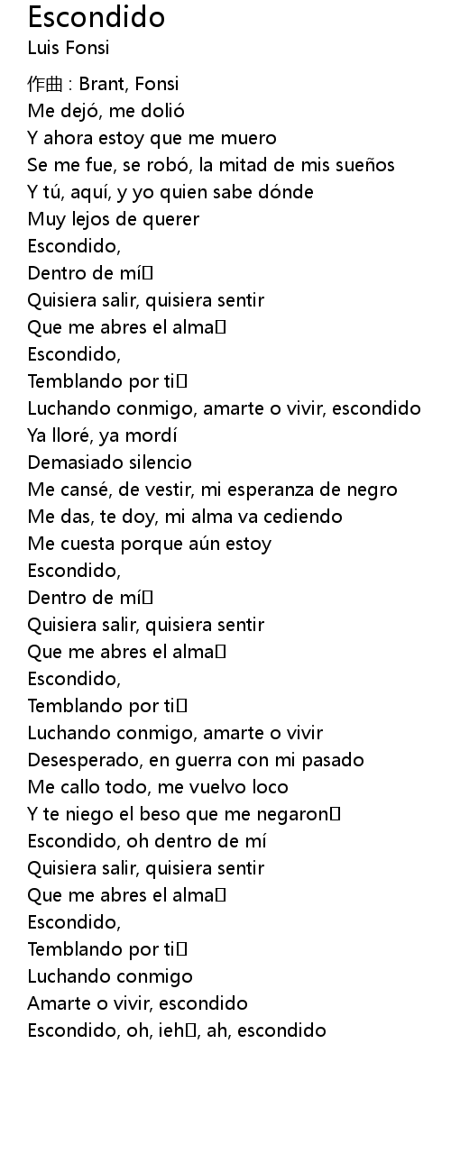 | Escondido, oh, ieh , ah, escondido |