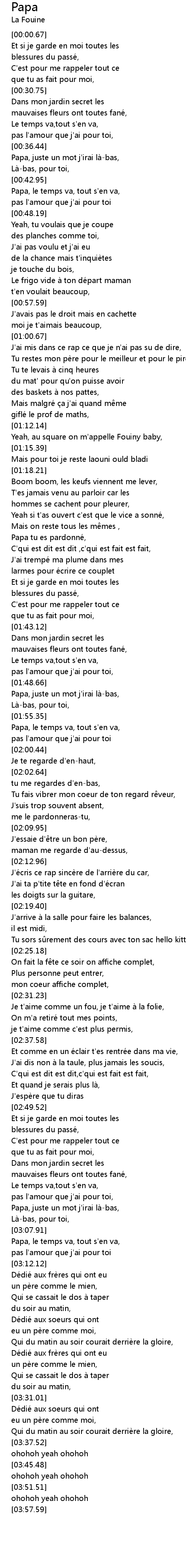 | [03:08.67] | Papa, le temps va, tout s' en va, |