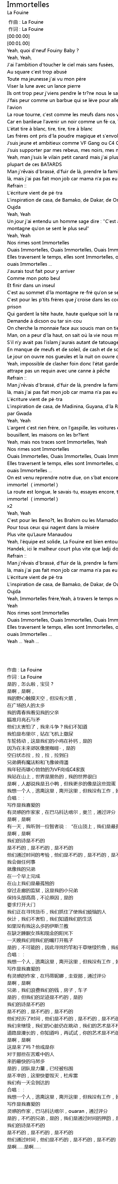 | [03:24.84] | Yeah, Immortelles frè re, Yeah, à travers le temps nos rimes restent, Yeah |