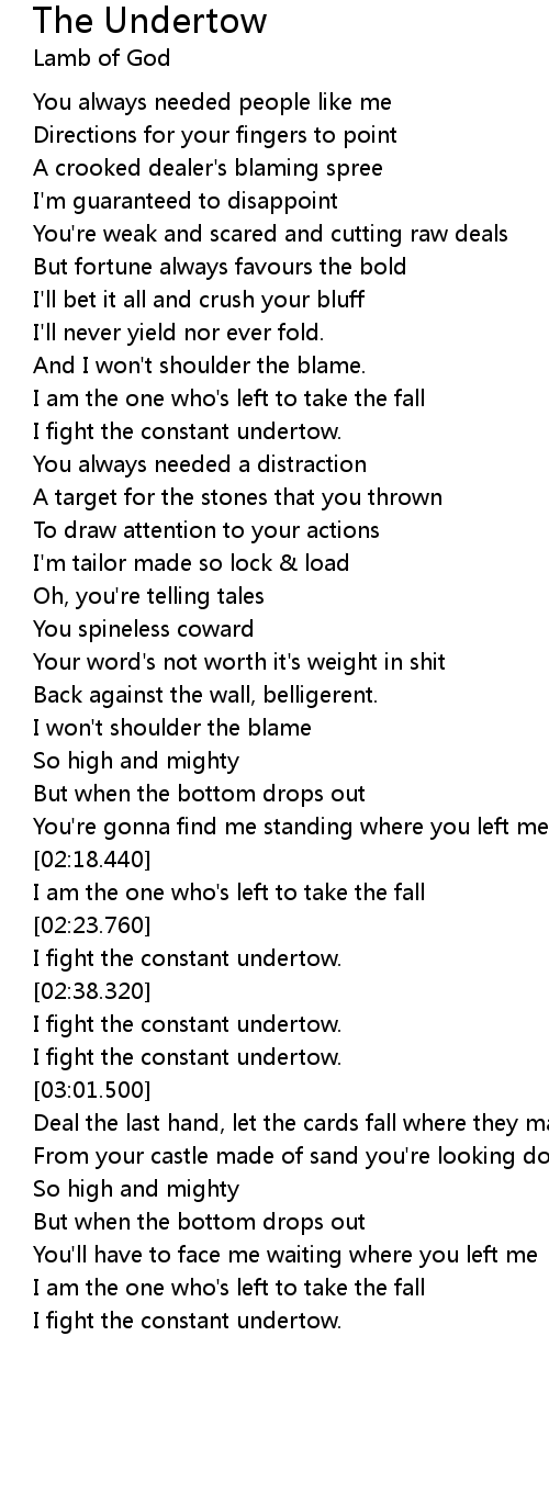 | [03:44.70] | Deal the last hand, let the cards fall where they may |