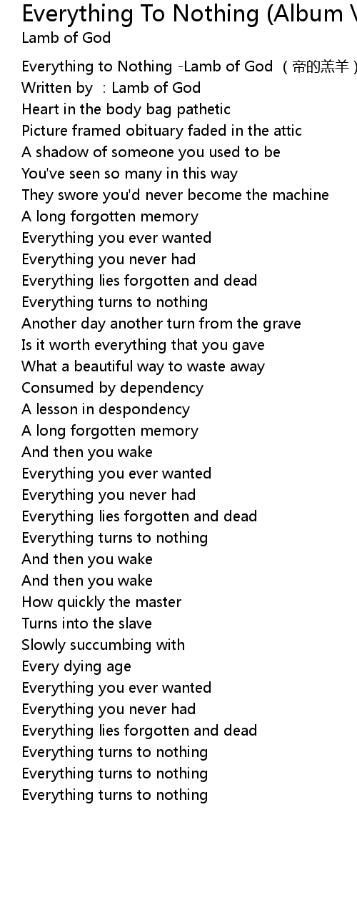 | [00:00.00] | Everything to Nothing Lamb of God dì de gāo yáng |